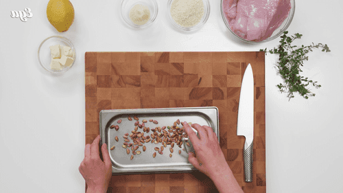 Spread the pistachios in an even layer on a baking sheet and place in the oven for 7 minutes.