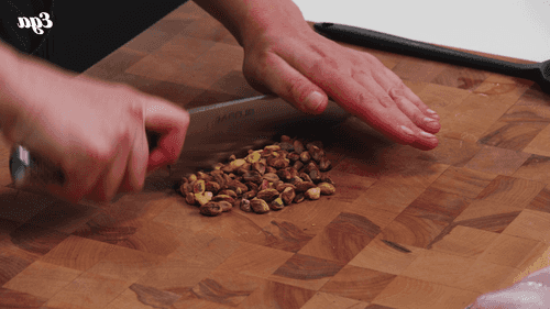 Remove the shells from the pistachios and chop them coarsely.