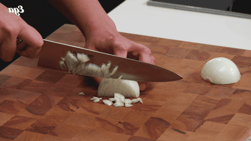 Chop the onion into small cubes.