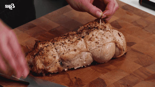 Remove the thread and slice the bird into circles.