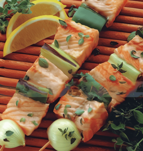 Norwegian salmon shashlik is the embodiment of Mediterranean culinary art, where fresh fish transforms into a fragrant and tender dish. Rich in healthy fats, Norwegian salmon acquires an exquisite texture when grilled, while shallots and leeks add a light sweetness and subtle aroma. The dish's origins are tied to coastal traditions where freshly caught fish is cooked over an open flame, highlighting its natural flavor. This dish is perfect for summer evenings when you want to enjoy the freshness of seafood combined with herbs and spices. Serve the shashlik with lemon juice and a glass of white wine to reveal all its flavor nuances.