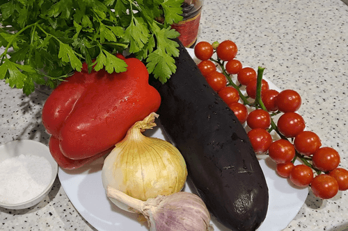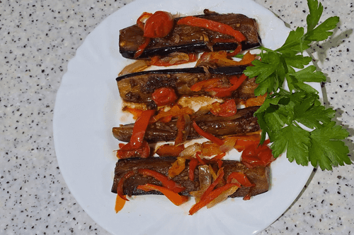 Eggplants with vegetables and soy sauce is a harmonious dish that combines the tenderness of eggplants, the sweetness of bell peppers, the freshness of cherry tomatoes, and the spiciness of garlic. It comes from European cuisine, where balance of flavors and natural ingredients are valued. Slightly roasted to a golden crust, eggplants absorb the aroma of soy sauce, gaining a rich and deep flavor. The vegetables retain their juiciness and add vibrant colors to the dish. This is an ideal option for a light dinner or side dish that can be served as a standalone meal or as an accompaniment to meat, rice, or pasta. Parsley adds a fresh accent to the composition. The simplicity of preparation makes this recipe accessible even for beginner cooks, while the result is always impressive.