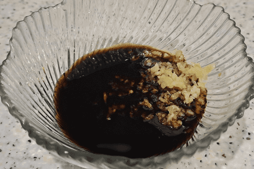 Peel the garlic, wash it well, dry it, press it through a press, and mix it in a separate container with soy sauce.