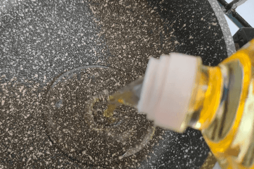 Pour vegetable oil into the pan.