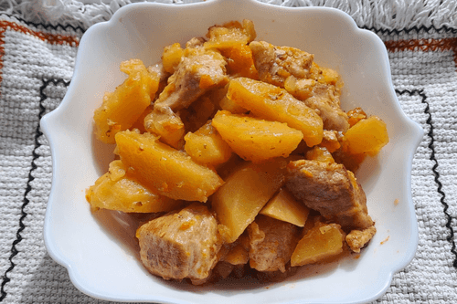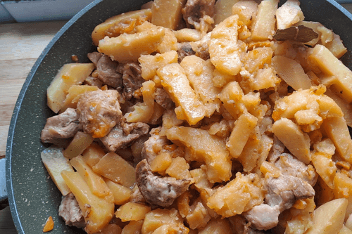 Тушеный картофель с мясом – сытное и уютное блюдо, глубоко укоренившееся в русской кухне. Его история тянется веками, когда простые ингредиенты — мясо, картофель и овощи — составляли основу крестьянского рациона. Это блюдо символизирует домашний комфорт и теплоту семейных ужинов. Нежное мясо, пропитанное ароматами лука, моркови и чеснока, приобретает богатый вкус, а картофель, медленно тушащийся в собственном соке, становится мягким и насыщенным. Лавровый лист придает тонкие пряные нотки, дополняя гармонию вкусов. Это универсальное угощение, которое можно подавать как самостоятельное блюдо или сопровождать свежими овощами и зеленью. Оно идеально подходит для холодных вечеров, согревая своим насыщенным ароматом и аппетитной текстурой.