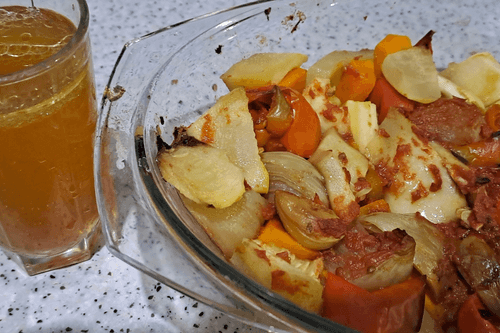 If there is a lot of vegetable broth left in the dish after roasting the vegetables, you can drain it if you want, so the caviar won't be too runny.