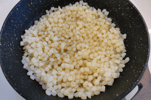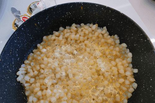 Put the rice in the same pan and set it on high heat.