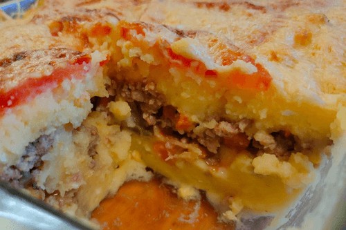 Potato casserole with minced meat is a cozy dish of Russian cuisine that warms the soul and satisfies the taste. The casserole combines the tenderness of mashed potatoes, the juiciness of minced meat, and the aroma of sautéed vegetables, creating a harmony of textures and rich flavor. The recipe's origins trace back to traditional home-cooked meals that used simple yet hearty ingredients. Five layers including tomatoes and melted cheese make the dish appetizing and special. An ideal choice for a family dinner, it pairs wonderfully with fresh vegetables and herbs. The casserole is not only delicious but also convenient—it can be prepared in advance and reheated before serving. With each bite, the coziness of home cooking unfolds, enriched with the flavors of tradition.