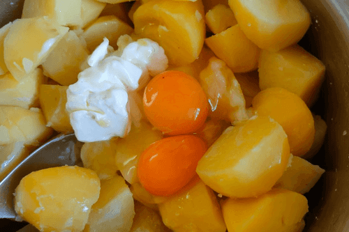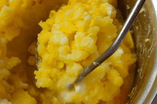 Mash the potatoes into puree.