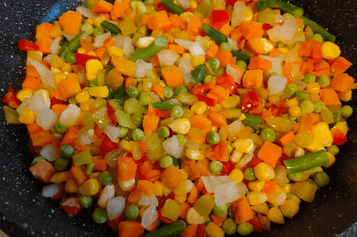 Sauté the vegetable mix in vegetable oil for 10 minutes.