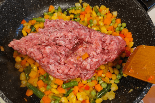 Add minced meat.