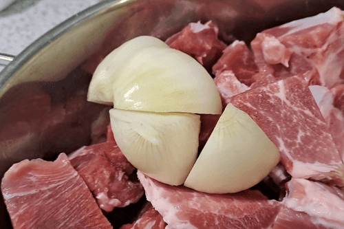 Wash the meat well under running water, dry it a little, cut it into medium-sized pieces of arbitrary shape to pass through the meat grinder.
