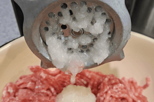 Peel the onion, wash it well under running water, cut it into pieces to pass through the meat grinder.