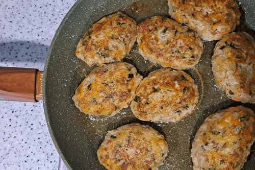 Pour 50 ml of vegetable oil into the pan. Fry the patties on both sides over medium heat with the lid open until golden brown.