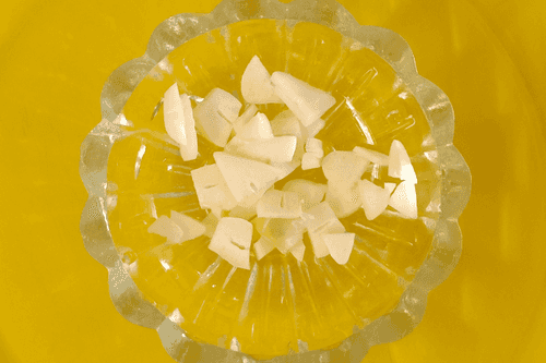 Fry the garlic in a pan for 1 minute, add chicken broth to the garlic, and bring to a boil.