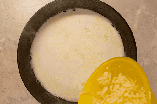 Add grated cheese and let the sauce simmer for 2 minutes.