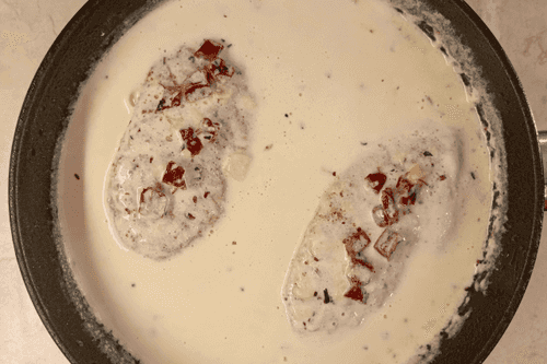 Heat the chicken breasts in the sauce for 4-5 minutes.
