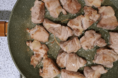 Fry the meat on medium heat on all sides until browned.