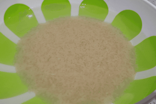 Rinse the rice well, cover it with water, and set it aside.