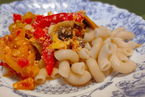 Next, place the pasta with vegetable sauce on plates and serve at the table.