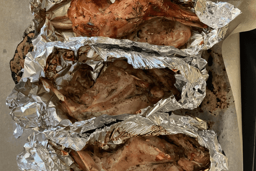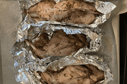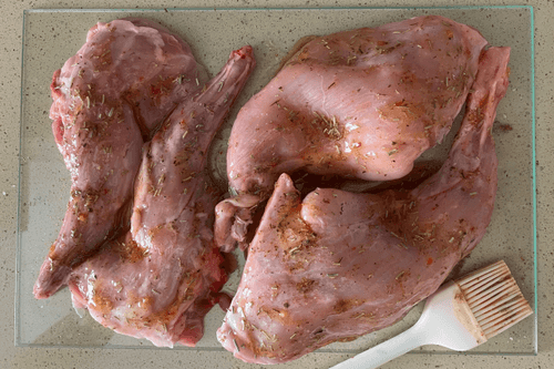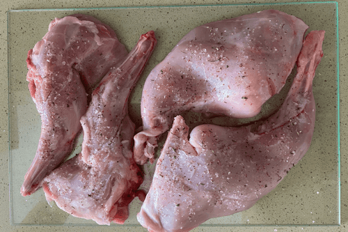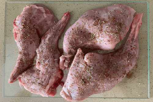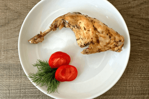 Ножки кролика с соусом – это изысканное блюдо русской кухни, сочетающее в себе нежность мяса и яркость специй. Кроличье мясо, обладающее легкой сладостью, маринуется в адыгейской соли, розмарине и сладком соусе чили, что придает ему тонкий аромат и пикантные нотки. Запекание в фольге сохраняет сочность, а завершающее запекание раскрывает аппетитную золотистую корочку. Подается с помидорами и укропом, добавляя свежести и контраста во вкусе. Это блюдо идеально для торжественного ужина или уютного семейного обеда, сочетая в себе простоту приготовления и изысканный вкус. В русской кулинарной традиции кроличье мясо ценится за свою диетичность и богатый вкус, что делает этот рецепт прекрасным выбором для гурманов.
