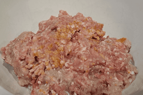 Add 1 teaspoon of salt and 1 teaspoon of mixed ground peppers to the minced meat.