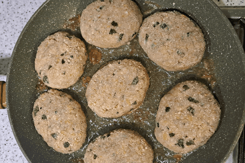 Pour breadcrumbs into a separate container. Shape the patties and coat each one well in the breadcrumbs.