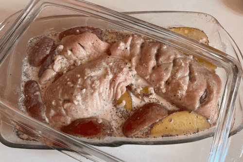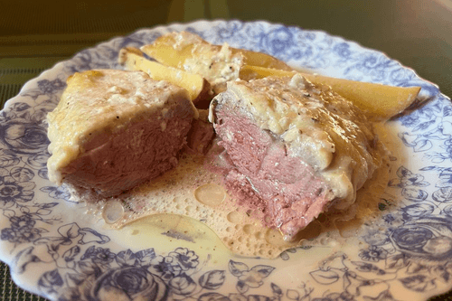 Duck breasts stewed with potatoes in creamy sauce are a true embodiment of comfort and harmony in European cuisine. The dish has a tender, rich flavor due to the combination of juicy duck meat, soft potatoes, and creamy sauce that gives it a velvety texture. Historically, duck meat was valued for its nutrition and used in traditional rural recipes of France and Italy. Roasting with garlic and Provençal herbs adds subtle aromatic notes to the dish, while the finishing touch—melted Parmesan—gives it an exquisite depth of flavor. It pairs perfectly with a glass of white wine, and its velvety structure makes it a wonderful choice for family dinners or festive gatherings.
