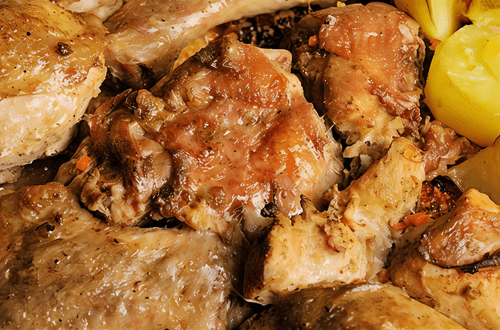 Chicken stew is a harmony of flavors and aromas born from European traditions. The combination of tender chicken breast, fragrant thyme, and sautéed vegetables makes the dish rich yet light. Eggplants give it a velvety texture, while sweet peppers and onions add fresh, sweet notes. Each serving is carefully arranged—juicy chicken rests on a bed of green salad complemented by vegetables, creating a striking contrast of colors and flavors. This dish is perfect for a cozy family dinner or a festive table setting. A side of mashed potatoes or buckwheat makes it hearty and versatile. The stew can be garnished with sprigs of parsley and dill to enhance its fresh aroma. The taste is classic, but each ingredient reveals it in a new way, creating gastronomic pleasure.