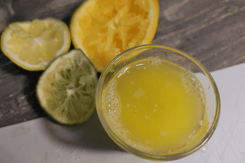 Squeeze citrus juice into melted butter.