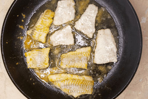 Fry the fish on both sides for 1 minute on high heat, then place it in a saucepan.