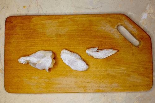 Wash the wings, cut at the joints, set aside the smallest one, dry with a paper towel, and place in a bowl.