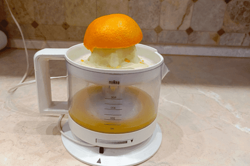 Squeeze juice from oranges and half a lemon, and strain the juice through a sieve if necessary.