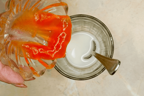 Dissolve a teaspoon of starch in 2 tablespoons of water, add chili sauce, and mix.