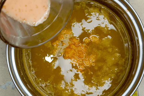 Add orange zest and starch with sauce to the juice, bring to a boil while stirring continuously until thickened.