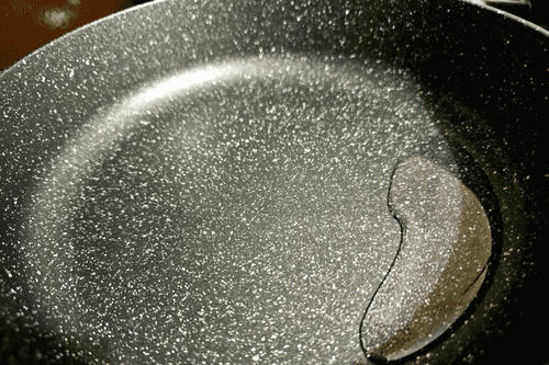 Heat the pan and pour in vegetable oil.
