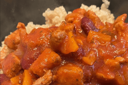 Киноа со свининой и фасолью в томатном соусе — это насыщенное и ароматное блюдо, сочетающее в себе нежность мяса, пикантность специй и бархатистую текстуру фасоли. Киноа, известная как суперфуд, придаёт блюду легкость, а богатый томатный соус раскрывает вкус каждого ингредиента. Такое сочетание напоминает традиционные европейские рагу, но с современным акцентом на полезные продукты. Блюдо идеально подойдет для уютного семейного ужина или сытного обеда, сочетаясь с бокалом красного вина или свежим хлебом. В нём гармония ярких вкусов, мягкость мяса и легкая остринка специй создают гастрономическое удовольствие.