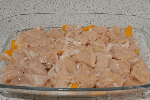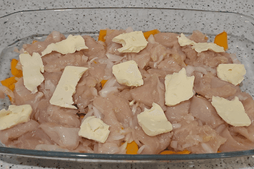 Chicken fillet baked with pumpkin in the oven