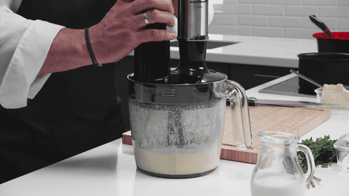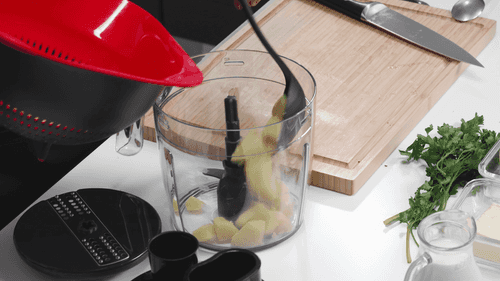 Then mix grated cheese into the hot puree - the cheese needs to melt to create a stretchy puree.