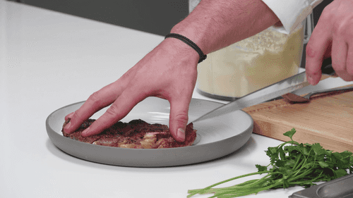 Slice the steak and place it on a plate.