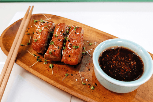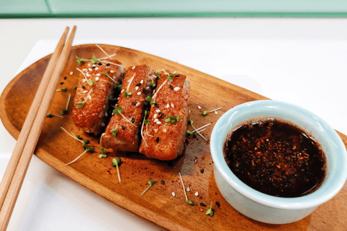 Duck tataki is an exquisite dish of Japanese cuisine that embodies the harmony of tender meat and rich sauce. This cooking technique originated in Japan, traditionally used for beef and fish, but duck adds a special depth of flavor. The meat is seared to a crispy golden crust while keeping a juicy texture inside. The sauce made from soy sauce, lemon juice, and sumac gives the dish tangy-salty notes with a hint of garlic and chili spiciness. Sesame and microgreens complete the composition, adding crunch and freshness. This dish is perfect for gourmets who appreciate flavor balance and simplicity in preparation, while its elegant presentation makes it suitable for both everyday dinners and special occasions.