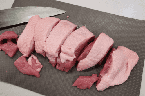 Cut the duck into thick slices (about 2–2.5 cm thick).