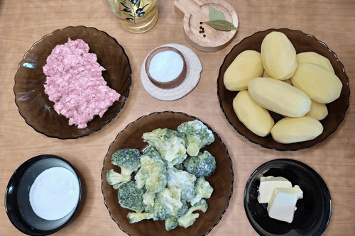 Potato casserole with minced meat and broccoli is the embodiment of home comfort and hearty enjoyment. This recipe originates from European cuisine, where casseroles became traditional family dishes. Tender mashed potatoes with aromatic butter form a soft base layered with juicy minced meat and fresh broccoli. The casserole is topped with a thin layer of sour cream, giving it an appetizing golden crust. Khmeli-suneli adds a slight spiciness, making the flavor rich and balanced. This dish is perfect for cozy family lunches as well as festive dinners, pairing wonderfully with fresh vegetable salads or pickled cucumbers. The casserole is not only nutritious but also healthy due to the vitamin- and antioxidant-rich broccoli.