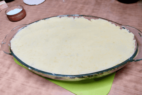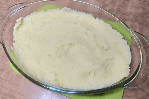 Then place the remaining potato mixture on top of the meat.