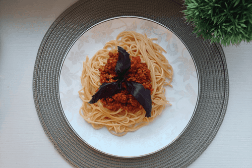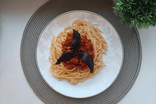 Спагетти с фаршем и томатным соусом — классическое блюдо итальянской кухни, воплощающее уют семейных ужинов. Корни этого рецепта уходят в традиции пасты Болоньезе, но его упрощённая версия стала любимым вариантом быстрого, но насыщенного ужина. Нежный говяжий фарш, обжаренный с луком и пряностями, приобретает сочность благодаря ароматному томатному соусу с базиликом и чесноком. В сочетании с идеально сваренными спагетти это блюдо дарит баланс насыщенного вкуса и нежной текстуры. Украшенный свежим базиликом, он приобретает освежающие нотки, делая каждый приём пищи особенным. Подходит как для повседневного обеда, так и для уютного ужина в итальянском стиле.