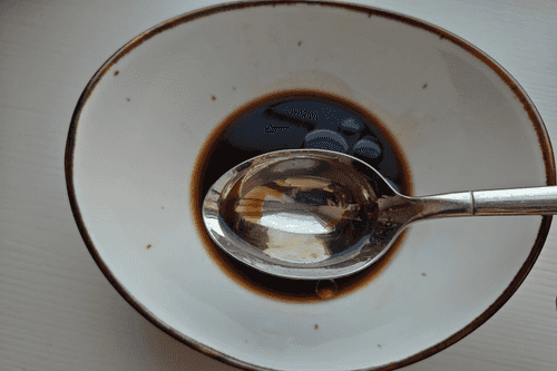 Pour the soy sauce into a separate bowl.
