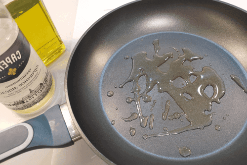 Heat two types of oil in a pan.
