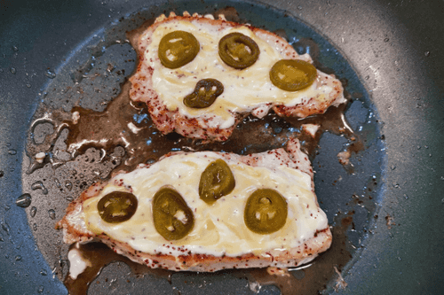Turkey with cheese is a dish that embodies the harmony of tender meat and spicy seasonings. The combination of poultry meat with cheese became popular due to the desire to create hearty yet refined recipes. In this version, it gains a special character from sumac's light tang and jalapeño's heat. Pushkin cheese melts, creating a stretchy texture, while the mustard-mayo sauce enriches the flavor with depth. Perfect for dinner with a glass of wine or as a spicy treat for a festive table. It cooks quickly while retaining the turkey's juiciness, and final touches like green onions and extra chili make the presentation especially appetizing. The dish not only delights with its taste but also creates an atmosphere of gastronomic pleasure.