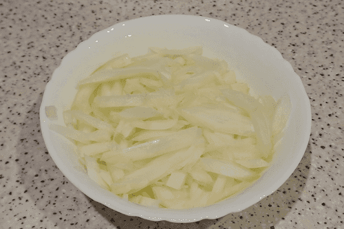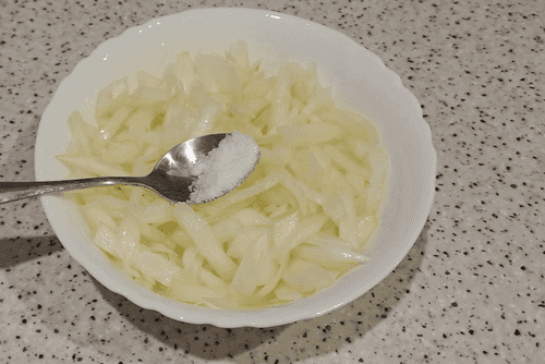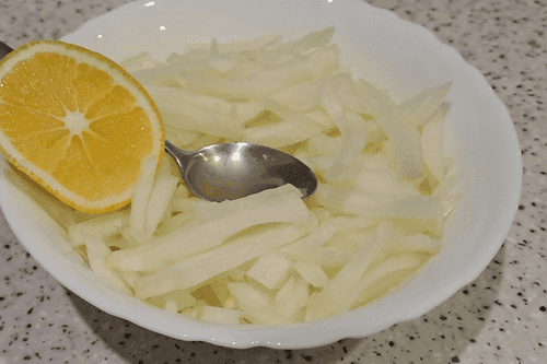 Squeeze 1 tablespoon of lemon juice from the lemon and add it to the chopped onion.