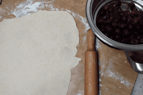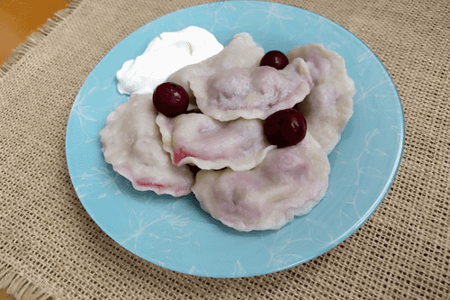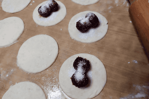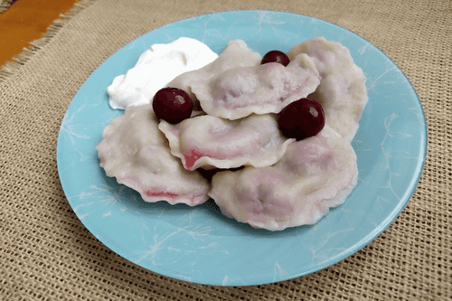 Spread the berries, sprinkle sugar on top, and form the dumplings. This should be done quickly and in small batches before the cherries melt. Boil water in advance.